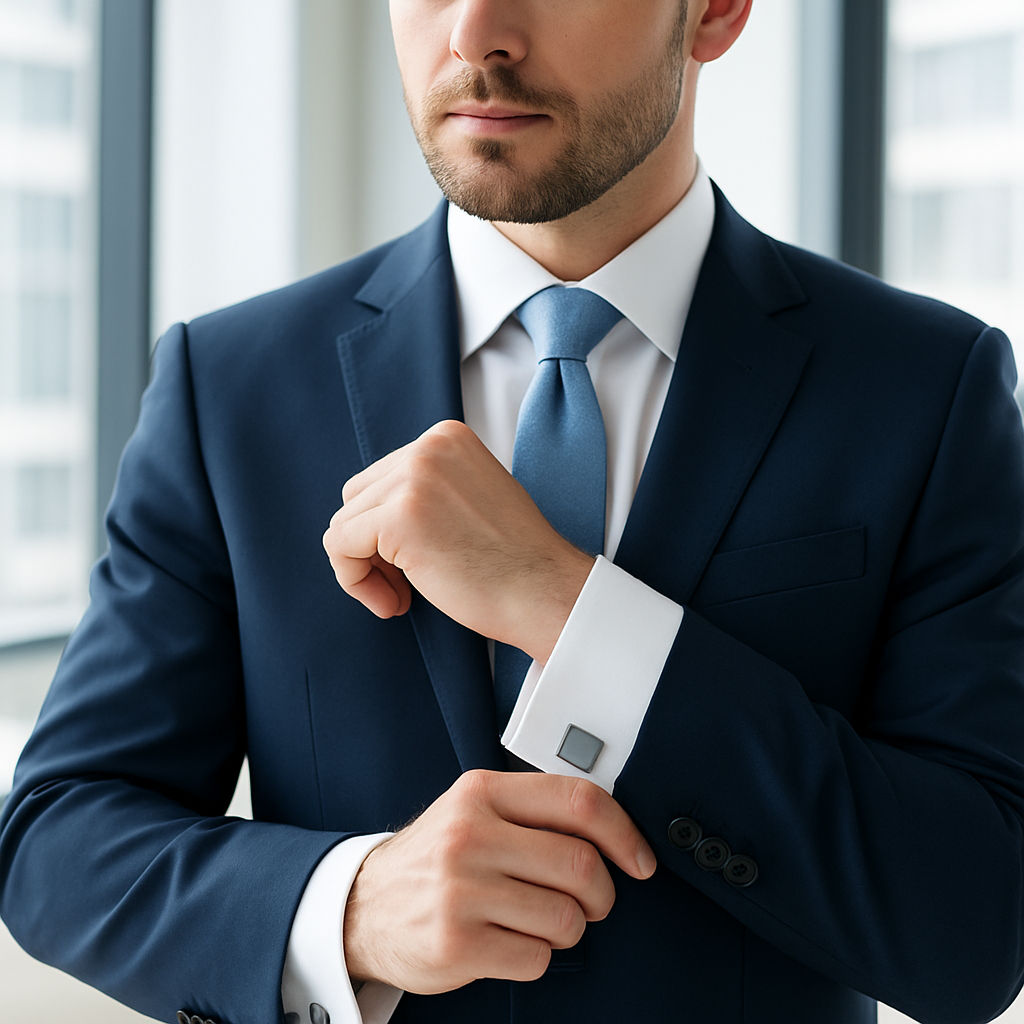 „Business Class“ sind Manschettenknöpfe für den modernen Gentleman – schlicht, elegant und passend zu jedem Anzug.
